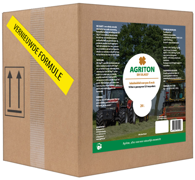 Als loonwerker wil je dat elke kuil bij ieder klant staat als een huis. Agriton EM Silage met vernieuwde formule helpt je precies daarbij. De nieuwe combinatie van EFSA‑approved bacteriën en gisten uit onze eigen fabriek zorgt voor een nóg snellere start van de conservering en extra stabiliteit in gras én mais. Minder verliezen, meer stabiliteit, en een kuil die fris blijft tot het eind: dát is waar je klanten op rekenen.
